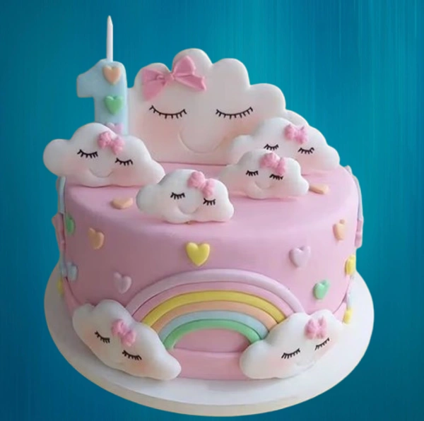 Soft, moist sponge layers in flavors like vanilla, strawberry, chocolate, or red velvet lie beneath the stunning design, making every bite as delightful as the look. From stars and clouds to a glittery number “1” topper, every detail is crafted with love to bring smiles and sparkle to your little princess’s big day.